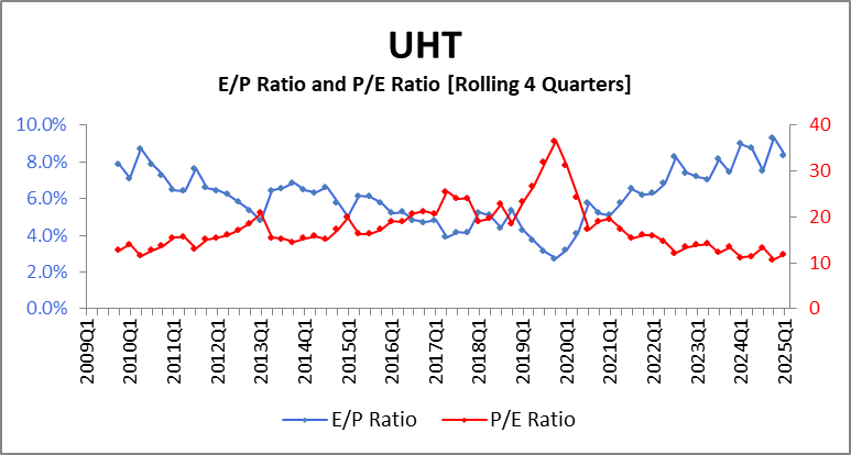 I don’t know why the stock memed its way past $100 back in late 2019 but now seems to have overcorrected. It is not common to see UHT trading as low as its current P/E ratio of 12.