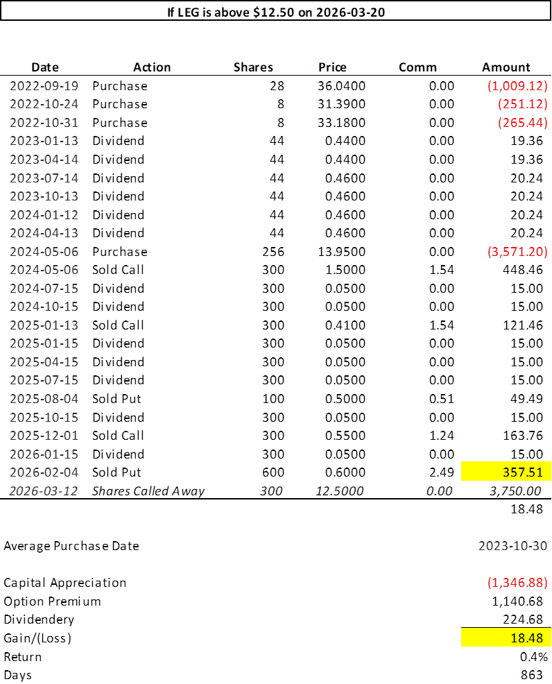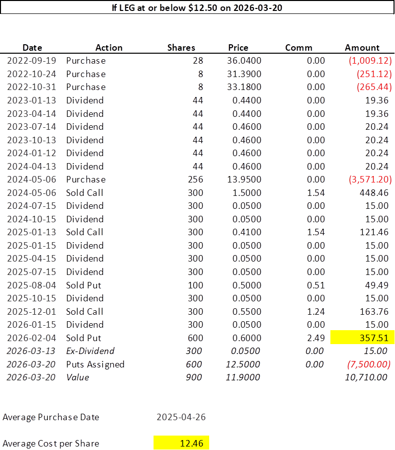 Selling to Open: 6 March 20, 2026 $12.50 Put Options [Symbol: LEG260320P12.5]